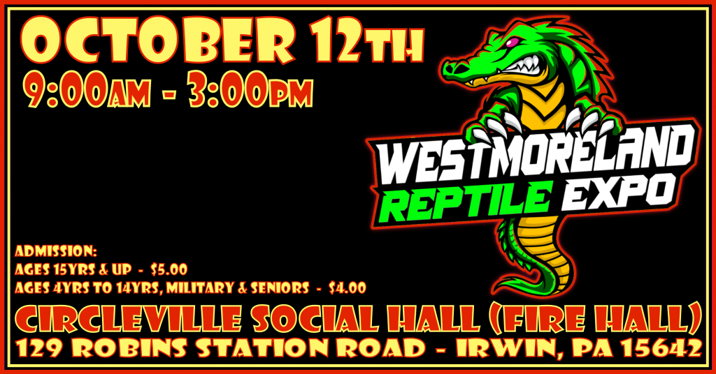 Join us for the next Westmoreland Reptile Expo, and experience why this event has become a local favorite since its founding in 2014. We can’t wait to welcome you to Westmoreland County for a day filled with excitement, education, and incredible animals!